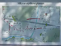 ![]() Overview of the battle. Norwegian forces in green symbols. German forces in red symbols. | |||||||