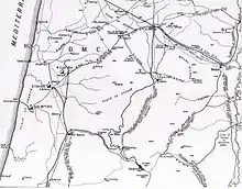 The XXI Corps was deployed without a corps reserve. The 60th Division was positioned on the coast with the 7th (Meerut) Division on their right, then the 75th Division with the longest frontage, was followed by the 3rd (Lahore) Division. On their right, at the eastern end of the XXI Corps and the Battle of Sharon's front line in the Judean Hills, the 54th (East Anglian) Division with the Détachement Français de Palestine et de Syrie, held the Rafat salient.[25][Note 6]