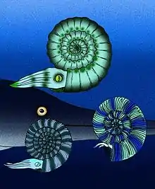 Behemoth ammonites grew fairly large, with a shell diameter over one meter in the type species, B. lapideus.