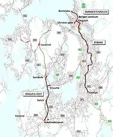 The Bergen Program for Transport, Urban Development and the Environment (Norwegian: Bergensprogrammet for transport, byutvikling og miljø) is a political agreement for financing road and light rail investments in Bergen, Norway, from 2002 to 2015. The projects cost 5.3 billion kr, and will be partially financed through state grants and partially through a toll ring.[1]