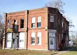 The Bicksler Block is a historic building located in Salem, Iowa, United States. John Bicksler had this commercial building built in 1886. The two story, brick structure is a combination of the Romanesque Revival and the Italianate styles. Salem's central business district was plagued by fires from 1886 to 1933. This building was built after the first major fire to effect the town in 1886.[2] The store front on the east side of the building housed a bank into the early 1900s and then the local post office was located here until 1967. The western half of the building has housed a variety of businesses over the years, including: clothing stores, two different milliners, a restaurant, and a pool hall. The second floor housed a variety of offices, including a dentist. The American Legion acquired the building from the Bicksler family in 1950. It was listed on the National Register of Historic Places in 2010.[1]