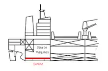 Bilges may contain partitions to damp the rush of water from side to side and fore and aft to avoid destabilizing the ship due to the free surface effect. Partitions may contain limber holes to allow water to flow at a controlled rate into lower compartments.[3]