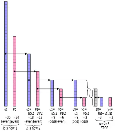- if this only applies when both numbers are even, the algorithm is similar to the Euclidean algorithm.