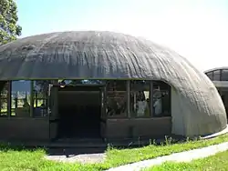 The original Binishells are circular in plan and are reinforced via a system of springs and rebars. They can often be constructed in less than one hour.[2] The technology was derived from air structure, which is erected just as a balloon is erected. Bini further drew insights from the pneumatic air-supported tennis dome. In 1965, the first Binishell was built. It had a 12-meter diameter, 6-meter height, and was lifted using Bini's patented pneumatic formwork.[3]