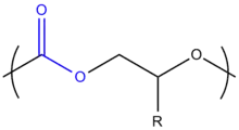 One of the most important and most studied groups of biodegradable polymers are polyesters. Polyesters can be synthesized in a number of ways including direct condensation of alcohols and acids, ring opening polymerizations (ROP), and metal-catalyzed polymerization reactions.[9] A great disadvantage of the step-wise polymerization via condensation of an acid and an alcohol is the need to continuously remove water from this system in order to drive the equilibrium of the reaction forward.[10] This can necessitate harsh reaction conditions and long reaction times, resulting in a wide dispersity. A wide variety of starting materials can be used to synthesize polyesters, and each monomer type endows the final polymer chain with different characteristics and properties. The ROP of cyclic dimeric glycolic or lactic acid forms α-hydroxy acids which then polymerize into poly-(α-esters).[10] A variety of organometallic initiators can be used to start the polymerization of polyesters, including tin, zinc, and aluminum complexes. The most common is tin(II)octanoate and has been approved as a food additive by the U.S. FDA, but there are still concerns about using the tin catalysts in the synthesis of biodegradable polymers for biomedical uses.[9] The synthesis of poly(β-esters) and poly(γ-esters) can be carried out by similar ROP or condensation methods as with poly(γ-esters). Development of metal-free process that involve the use of bacterial or enzymatic catalysis in polyester formation is also being explored.[11][12] These reactions have the benefit of generally being regioselective and stereospecific but suffer from the high cost of bacteria and enzymes, long reaction times, and products of low molecular weight.