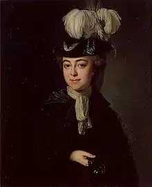 The Russian Empress gave birth to her only official illegitimate son[1] on April 11, 1762, several months before her ascension to the throne. Catherine had to conceal the pregnancy. When the due date came, to distract Peter III, her trusted servant Vasily Shkurin ordered to burn his own house, knowing that the Emperor had a passion to watch the fires.[2] The child was named Aleksey after his uncle and godfather, Count Aleksey Orlov. He was brought up in Bobriki, a village in the Tula guberniya. On April 2, 1781, Catherine sent him a letter, in which she openly avowed her maternity. She named him Bobrinsky, a surname derived from the estate he lived in. On the 5th day of his reign, Emperor Paul made his half-brother a Count of the Russian Empire and promoted him General-Major. He married Baroness Anna Dorothea von Ungern-Sternberg (1769–1846) and had issue which continues to this day. The first Count Bobrinsky died on June 20, 1813 in his estate of Bogoroditsk, to the east of Tula.