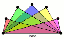 A second type, which might be called a triangular book, is the complete tripartite graph K1,1,p. It is a graph consisting of triangles sharing a common edge.[3] A book of this type is a split graph. This graph has also been called a [4] or a thagomizer graph (after thagomizers, the pointy tails of Stegosaurus dinosaurs, because of their pointy appearance in certain drawings) and their graphic matroids have been called thagomizer matroids.[5] Triangular books form one of the key building blocks of line perfect graphs.[6]