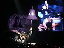 In April 2016, during the Rock or Bust World Tour, AC/DC announced the departure of Johnson, citing hearing issues. As the band explained it, Johnson risked total hearing loss if he continued. Johnson stated that his hearing issues hadn't come from performing for 36 years with AC/DC, but from having forgotten to put ear plugs in during a race that left him with a punctured left ear drum. Guns N' Roses singer Axl Rose was recruited to complete the remaining ten shows in North America and twelve shows in Europe.[20] Johnson's last show with AC/DC was on 28 February 2016; at the Sprint Center in Kansas City.[21] After departing AC/DC, he recorded a new song with comedian Jim Breuer called "Mr. Rock 'n' Roll". Johnson made a cameo appearance with rock band Muse on 31 August 2017, performing a rendition of "Back in Black" with the group.[22]