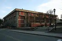 - Hunt Hall (1936, 25,500 square feet (2,370 m2)), formerly the Dr. Albert F. Hunt Junior High School, is on School St. It houses the parking clerk and student ID services in the basement and classrooms on the upper floors.