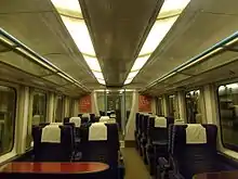 ![]() The interior of Standard Class aboard a Gatwick Express Class 460 EMU | |