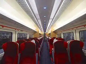 ![]() The interior of Standard Class aboard an LNER refurbished Mark 3 TS vehicle | |