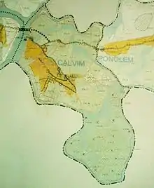 The island of Calvim is one of the fourteen wards or sub-divisions within the Aldona Comunidade.[3] It is accessible by bridge. Other wards of the Aldona comunidade are Quitula, Ranoi, Coimavaddo, Gutcoi, Udoi, Cottarbhat, Santerxette, Panarim, Naikavaddo, Castelvaddo, Carona, Lankdem and Panth.[3]