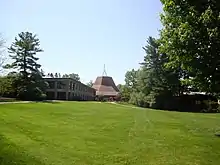Calvin acquired the 166-acre (0.67 km2) property in the mid-1950s and began a process of turning a biologically diverse farm into a center for Christian higher education.[32] The master plan for the site was developed in 1957 by William Beye Fyfe, an adherent of the Prairie School of architecture.[33] Working with President Spoelhof, Fyfe came up with a set of design principles for the campus aimed to both symbolically represent and physically promote such ideals as the integration of faith and learning; integration of administration, faculty, and students; and the inter-relatedness of all the disciplines.[33] The integration of knowledge is symbolized in the arrangement of the academic buildings. Unlike many college campuses which feature an impressive structure, like a chapel, tower, or administrative hall, at the center of campus, Calvin has no central building. The major buildings on campus form a great circle around the Commons Lawn. The lawn was intended and serves as the common point of interaction between faculty, students, and administration. Following the ideal of an integrated community, most buildings serve a variety of purposes. Administration is mixed with classrooms, faculty offices and lecture halls. Departments are not sequestered from other departments in separate buildings; instead many departments share facilities to encourage the solidarity of purpose and unity contributing to a strong inter-departmental character and strong Christian community.