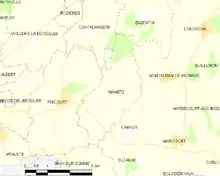 In 1914, Mametz was a village on the D 64 road, about 20 mi (32 km) north-east of Amiens and 4 mi (6.4 km) east of Albert. The village of Fricourt was to the west, Contalmaison to the north, Montauban to the north-east and Carnoy and Maricourt to the south-east. Mametz Wood was 1,000 yd (910 m) to the north-west and the village was the fifth largest in the area, with about 120 houses and had a station on the light railway from Albert to Péronne.[1] During the Race to the Sea, after the Great Retreat, the French 11th Division attacked eastwards north of the Somme but after the French territorials were forced back from Bapaume, the division was ordered to defend bridgeheads from Maricourt to Mametz.[2] The II Bavarian Corps attacked on 27 September between the Somme and the Roman road from Bapaume to Albert and Amiens, intending to reach the Ancre and then continue westwards along the Somme valley. The 3rd Bavarian Division advanced close to Montauban and Maricourt, against scattered resistance from French infantry and cavalry. On 28 September, the French were able to stop the German advance on a line from Maricourt to Fricourt and Thiépval. The German II Cavalry Corps (Höhere Kavallerie-Kommando 2 [Higher Cavalry Command 2 or HKK 2]) moved northwards and was held up in the vicinity of Arras, by the French II Cavalry Corps (General Antoine de Mitry).[3]