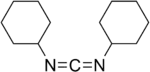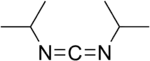 In organic chemistry, a carbodiimide (systematic IUPAC name: methanediimine[1]) is a functional group with the formula RN=C=NR. They are exclusively synthetic. A well known carbodiimide is dicyclohexylcarbodiimide, which is used in peptide synthesis.[2] Dialkylcarbodiimides are stable. Some diaryl derivatives tend to convert to dimers and polymers upon standing at room temperature, though this mostly occurs with low melting point carbodiimides that are liquids at room temperature.[3] Solid diaryl carbodiimides are more stable, but can slowly undergo hydrolysis in the presence of water over time.