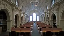 The University maintains 15 student halls and a number of student houses throughout the city of Cardiff; providing a total of 5,362 student places in accommodation.[68] They are in a variety of architectural styles and ages, from the Gothic Aberdare Hall, built in 1895, to the modern Talybont Gate Building, completed in 2014. All first-year students are guaranteed a place in university owned and managed halls.[69] The Cardiff University Halls are: