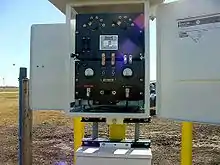 The DC power source would typically have a DC output of up to 50 amperes and 50 volts, but this depends on several factors, such as the size of the pipeline and coating quality. The positive DC output terminal would be connected via cables to the anode array, while another cable would connect the negative terminal of the rectifier to the pipeline, preferably through junction boxes to allow measurements to be taken.[18]