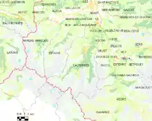 Key information can be found in the Dictionnaire toponymique de communes des Hautes Pyrénées [Toponymic dictionary of the communes of the Hautes Pyrenees] by Michel Grosclaude and Jean-François Le Nail[3] which relates the historical names of the village: