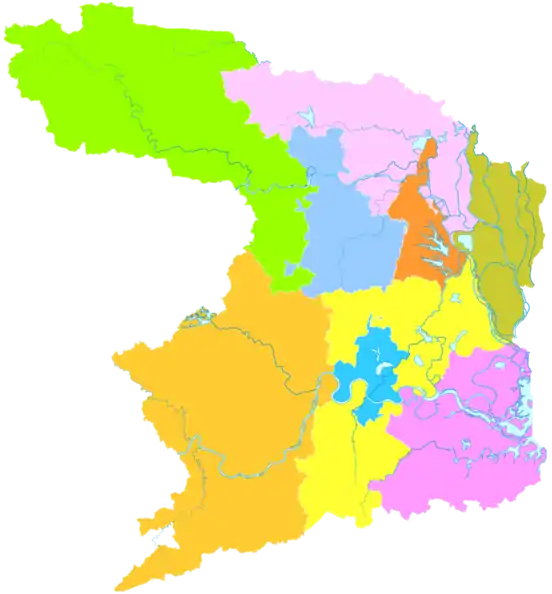 Changde (Chinese: 常德; pinyin: Chángdé [ʈʂʰǎŋ.tɤ̌]) is a prefecture-level city in the northwest of Hunan province, People's Republic of China, with a population of 5,717,218 as of the 2010 census, of which 1,232,182 reside in the built-up area (metro) made of two urban districts of Dingcheng and Wuling. In addition to the urban districts, Changde also administers the county-level city of Jinshi and six counties. Changde is adjacent to Dongting Lake to the east, the city of Yiyang to the south, Wuling and Xuefeng Mountains to the west, and Hubei province to the north.[3]