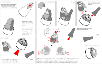 The IFE was built in two primary parts. One warhead was mounted directly to the front of the second stage, as had been the case for all three warheads in the original Polaris. The second part was the "penetration aid carrier", or PAC, which carried the second warhead along with the various penetration aids. The PAC dispensed one RV but the principal purpose of its manoeuvring capability was to dispense the 27 decoys into a 'threat tube' surrounding the RVs, which also had a 'disguise' to match their radar appearance to the decoys. The system was not a MIRVing system because the target of both warheads was one location, about which the two warheads were spread, as in the earlier MRV system of Polaris A3T.