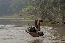 A village boy is jumping in the Chitra River, Norail, Bangladesh.