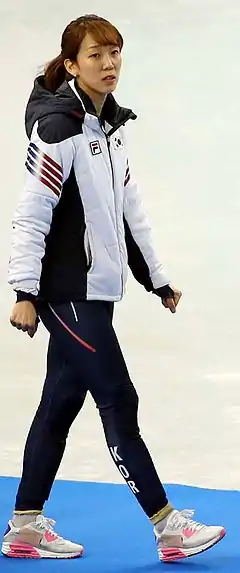 At the 2011 World Short Track Speed Skating Championships, Cho won the overall World Championship title, winning the 1000 m and 3000 m races, and finished third in the 1500 m race to capture the overall title.[1] In the following week, Cho helped Korea to win the 2011 World Team Championships (last one to be scheduled into foreseeable future) held in Warsaw.She was part of the Short Track Speed Skating team in the '3000m relay' that won a gold medal in the 2014 Winter Olympics.