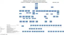 The Referat achieved success in the field of traffic analysis. By means of network diagrams, the organisation of the Allied tactical air forces in Italy was worked out at a time when W-Leit 2, in spite of its greater proximity to the situation and its operational experience with abundant wireless telegraphy (W/T) and R/T reports of XII Tactical Air Command and Department of the Air Force (DAF), was completely helpless.[56] In general, like clumsiness, distrust and dodging of responsibility characterised the leadership of Referat C. In order to keep its surplus of personnel occupied, ridiculous and unnecessary tasks, involving a labyrinth of paperwork were created. As a result, all feeling for conciseness was lost. The majority of members of the Referat, in spite of years of service in the Chi-Stelle, had never seen an out-station. This reluctance to face realities weakened the influence of the Referat.[56] In consequence, its options in organisational matters carried little weight within German High Command, and for the most part, it was limited to special problems of evaluation.[56]
