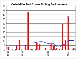 Colin Reid Miller (born 6 February 1964, Footscray, Victoria) is an Australian former cricketer who played 18 Tests for Australia between 1998 and 2001. In May 2002, Miller announced his retirement from cricket.[2]