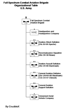 A Combat aviation brigade (CAB) is a multi-functional brigade-sized unit in the United States Army that fields military helicopters, offering a combination of attack/reconnaissance helicopters (Boeing AH-64 Apache), medium-lift helicopters (Sikorsky UH-60 Black Hawk), heavy-lift helicopters (Boeing CH-47 Chinook), and MEDEVAC capability.