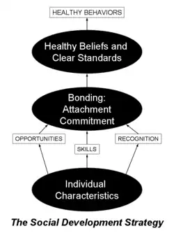 Developed by Drs. J. David Hawkins and Richard Catalano at the University of Washington's Social Development Research Group (SDRG), CTC's principal strategy, the Social Development Strategy (right), focuses on strengthening protective factors that can buffer young people from problem behaviors and promote positive youth development.[5]