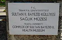 The Complex of Sultan Bayezid II Health Museum (Turkish: Sultan II. Bayezid Külliyesi Sağlık Müzesi) is a hospital museum of Trakya University within the Complex of Sultan Bayezid II located in Edirne, Turkey.