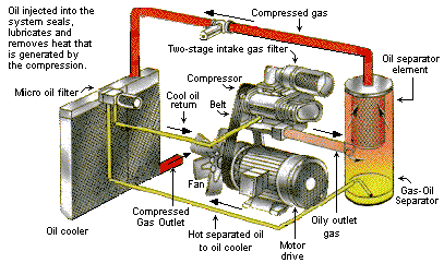 - Technical Centre Archived 2007-12-13 at the Wayback Machine Discusses oil-flooded screw compressors including a complete system flow diagram