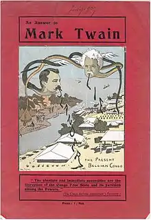 Leopold's agents countered with letters to the editor and a book entitled An Answer to Mark Twain. In the book they call Twain and Morel liars and manipulators. "Truth shines forth in the following pages, which summarily show what the Congo Free State is." "All the Mr. Twain and Morel have said. Lies!"[30] One of Leopold's hired lobbyists, Henry I. Kowalsky caused a sensation in December 1906 by making public all the communications between himself, Leopold, and the Congo State.[9]