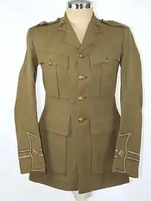 A 584-man strong column from the 3rd Battalion Connaught Rangers, commanded by Lieutenant Colonel A J Digan DSO, marched on Enniscorthy to fight the rebels who had taken over the town, however on arrival decided not to attack the insurrectionists' positions within the town to avoid turning Enniscorthy into a battlefield.[19] In the days after the insurrection began the Connaughts patrolled the countryside seeking contact with any of those war parties that cared to show themselves, in the process capturing hundreds of prisoners of war and seizing their weapons stocks.[20] A 250 strong force of the Connaughts, under the command of Major H.M. Hutchinson, marched to Ferns on 4 May 1916, and then on to Gorey the next day.[21] A party of 31 Connaught Rangers led by Lieutenant L.C. Badham searched houses in Kinsale on 4 May 1916, and the next day captured a large number of rebels and their weapons.[22] The Connaught Rangers' Column searched houses in New Ross on 9 May 1916 and then at Waterford the next day.[22] The Connaught Rangers Column reached Clonmel on 16 May 1916, searching further residences in the town and capturing another large number of rebels and their weapon-stocks.[21]