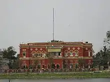 Cooch Behar Palace is built after the indo-saracenic architecture, the dome of the Palace is in Italian style, resembling the dome of St. Petersburg Cathedral, Vatican City, Rome and built in 1887, during the reign of Maharaja Nripendra Narayan.[11] In 1878, the maharaja married the daughter of Brahmo preacher Keshab Chandra Sen. This union led to a renaissance in Cooch Behar state.[14] Maharaja Nripendra Narayan is known as the architect of modern Cooch Behar town.[15]