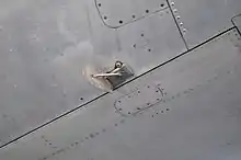A Cooper vane (also sometimes called a Dan Cooper switch or D.B. Cooper device) is a mechanical aerodynamic wedge that prevents the ventral airstair of an aircraft from being lowered in flight.[1] In the United States, following three hijackings in 1972, the Federal Aviation Administration ordered that Boeing 727 aircraft be fitted with Cooper vanes.[2] The device was named for an unidentified airplane hijacker dubbed D. B. Cooper, who used the rear stairway to exit a Boeing 727 in flight and make his escape via parachute.
