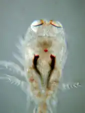 As with other crustaceans, copepods have a larval form. For copepods, the egg hatches into a nauplius form, with a head and a tail but no true thorax or abdomen. The larva molts several times until it resembles the adult and then, after more molts, achieves adult development. The nauplius form is so different from the adult form that it was once thought to be a separate species. The metamorphosis had, until 1832, led to copepods being misidentified as zoophytes or insects, (albeit aquatic ones), or, for parasitic copepods, 'fish lice'.[1]