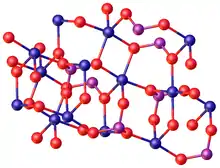 It is relatively commonly encountered as the hydrated species Cu2(PO4)OH, which is green and occurs naturally as the mineral libethenite. Pseudomalachite, Cu5(PO4)2(OH)4, is the most common Cu phosphate in the nature, typical for some oxidation zones of Cu ore deposits.[4][5]