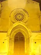 Founded in 1448, the church combines Renaissance and Medieval elements. Its most interesting feature is the rose window defined by 16 little tuff columns. The wooden portal (1614) is inlaid with floral motifs, figures of saints and coats of arms. Inside the church are works by the sanfilese painter Antonio Granata such as the canvas depicting the Madonna of the Rosary between Saints Dominic and Agnese da Montepulciano preserved in the ancient choir used today as a sacristy in the church (late 18th century). The high altar is made of polychrome marble (1767). In the transept, there is a Deposition and a San Vincenzo Ferreri (late 18th century, anonymous). The sacristy is noted for its ribbed vault, a double lancet window with a narrow arch and a wooden choir installed in 1635.