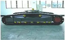 The chassis moves the excavator. It resembles a tank track, including planes and running track and operated by a motor-reducer pipe.