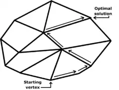 When it is initialized at a random corner of the cube, the criss-cross algorithm visits only D additional corners, however, according to a 1994 paper by Fukuda and Namiki.[6][7] Trivially, the simplex algorithm takes on average D steps for a cube.[8][15] Like the simplex algorithm, the criss-cross algorithm visits exactly 3 additional corners of the three-dimensional cube on average.