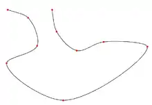 The curve is named after Edwin Catmull and Raphael Rom. The principal advantage of this technique is that the points along the original set of points also make up the control points for the spline curve.[5] Two additional points are required on either end of the curve. The default implementation of the Catmull–Rom algorithm can produce loops and self intersections. The chordal and centripetal Catmull–Rom implementations [6] solve this problem, but use a slightly different calculation.[7] In computer graphics, Catmull–Rom splines are frequently used to get smooth interpolated motion between key frames. For example, most camera path animations generated from discrete key-frames are handled using Catmull–Rom splines. They are popular mainly for being relatively easy to compute, guaranteeing that each key frame position will be hit exactly, and also guaranteeing that the tangents of the generated curve are continuous over multiple segments.
