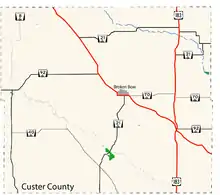 Custer County is a county in the U.S. state of Nebraska. As of the 2010 United States Census, the population was 10,939.[1] Its county seat is Broken Bow.[2] The county was formed in 1877[3] and named after General George Armstrong Custer,[4] who was killed at the Battle of Little Bighorn.