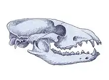 Cynarctus is an extinct genus of the Borophaginae subfamily of canids native to North America. It lived during the Middle to Late Miocene 16.0—10.3 mya, existing for approximately 5.7 million years .[1] Fossils have been uncovered in California, Maryland, western Nebraska, and Texas. It was likely an omnivore, and lacked the bone-cracking adaptations found in some later borophagines.[2]
