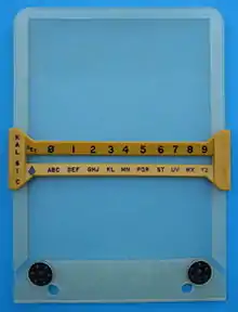 For authentication, a challenging station selects a letter at random from the left most column followed by a second (randomly selected) letter in the row of the first chosen letter. The station being challenged would then authenticate by picking the letter directly below the row and position of the second letter selected.[1][2]