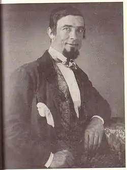 Rice's uncle was a ringmaster for the Howes & Turner[2] circus, organized in Salem, New York, in 1826. According to Rice himself, this was the first American circus to feature the canvas top that became so iconic. He traveled with this circus for 'several years' as a youngster.[3] Rice changed the circus into what it is today by combining animals, acrobats and clowns.[1] His first break came in 1841, when he got a job of presenting a pig named Sybil who could do many tricks, including the ability to tell time.[1] From there he moved on to singing and dancing, and got caught up briefly in the popularity of the 'negro song', singing in blackface.[4] Gaining fame and popularity, he changed styles once again; he starred in various parodies of works by William Shakespeare, including that of "Dan Rice's Version of Othello" and "Dan Rice's Multifarious Account of Shakespeare's Hamlet". He would perform these with various songs and dialects. "Rice was not simply funnier than other clowns; he was different, mingling jokes, solemn thoughts, civic observations, and songs."[1] During the 1847–48 season he was working with the circus of Gilbert R. Spalding.[5]