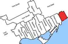 | Riding dissolved into Greenwood, Scarborough West and York East | ||||