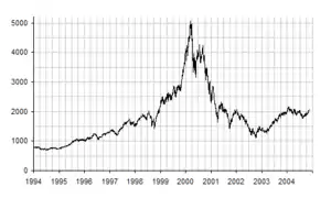 The ability for individuals to day trade via electronic trading platforms coincided with the extreme bull market in technological issues from 1997 to early 2000, known as the dot-com bubble. From 1997 to 2000, the NASDAQ rose from 1,200 to 5,000. Many naive investors with little market experience made huge profits buying these stocks in the morning and selling them in the afternoon, at 400% margin rates. An unprecedented amount of personal investing occurred during the boom and stories of people quitting their jobs to day trade were common.[30]
