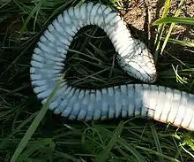 Automimicry refers to instances in which one body part of an animal mimics another. This may help and animal survive an attack, or help a predators to appear innocuous. Examples include many moth, butterfly, and fish species that have "eye-spots". These are large dark markings that help prey escape by causing predators to attack a false target. For example, the gray hairstreak (Strymon melinus) shows the false head at its rear; it has a better chance of surviving an attack to that part than an attack to the head. Another example is the "two-headed" snake of Central Africa which has a tail that resembles a head. The snake even moves its tail in the way most snakes move their heads.[16] This adaptation functions to deceive prey as to the source of an attack.