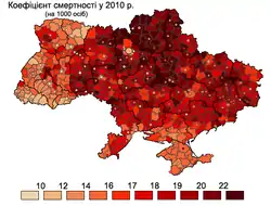 - Общий коэффициент смертности (на 1000 населения): Украина: 1950-2013 [Crude death rate (per 1,000 people): Ukraine: 1950-2013]. Demoscope Weekly (in Russian). Archived from the original on 21 March 2016. Retrieved 22 April 2016.